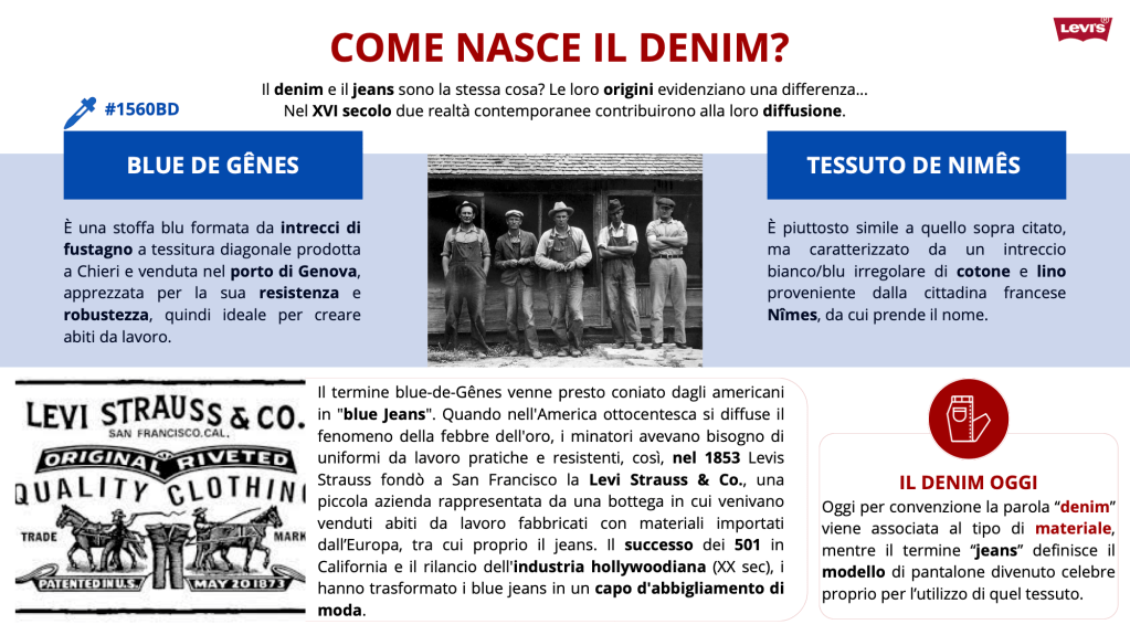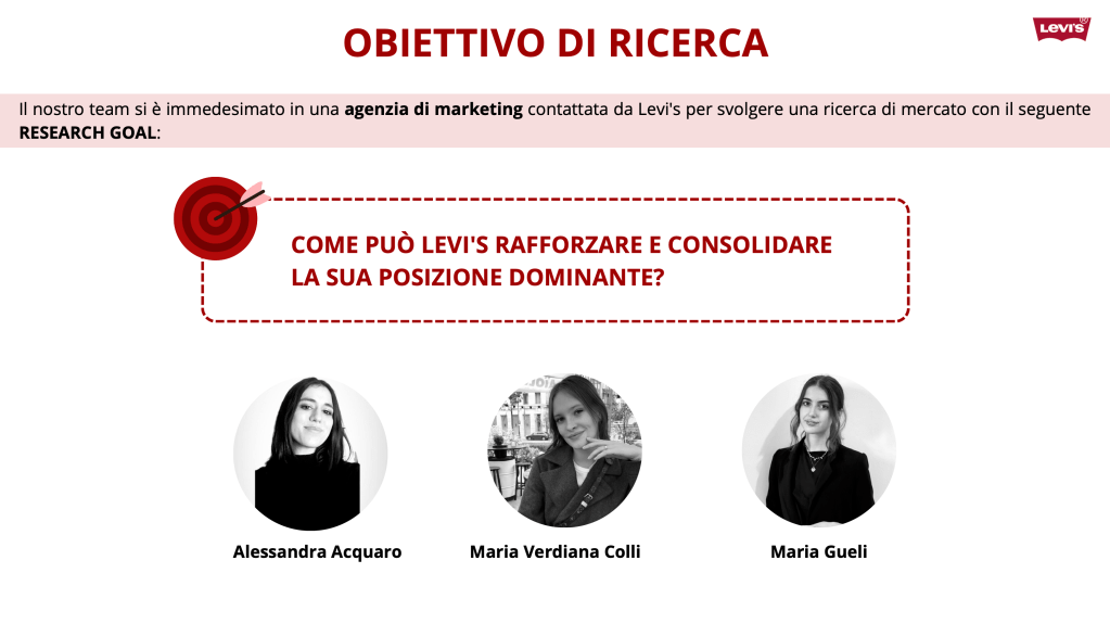 Il team, composto da Alessandra Acquaro, Maria Verdiana Colli e Maria Gueli, studentesse di Marketing Management dell’Università Bocconi, si è immedesimato in un’agenzia di marketing contattata da Levi’s per svolgere una ricerca di mercato dal research goal: “Come può Levi’s rafforzare e consolidare la sua posizione dominante?”. I risultati delle loro analisi hanno portato allo sviluppo di quattro strategie manageriali, volte a consolidare il legame del brand con i propri consumatori.