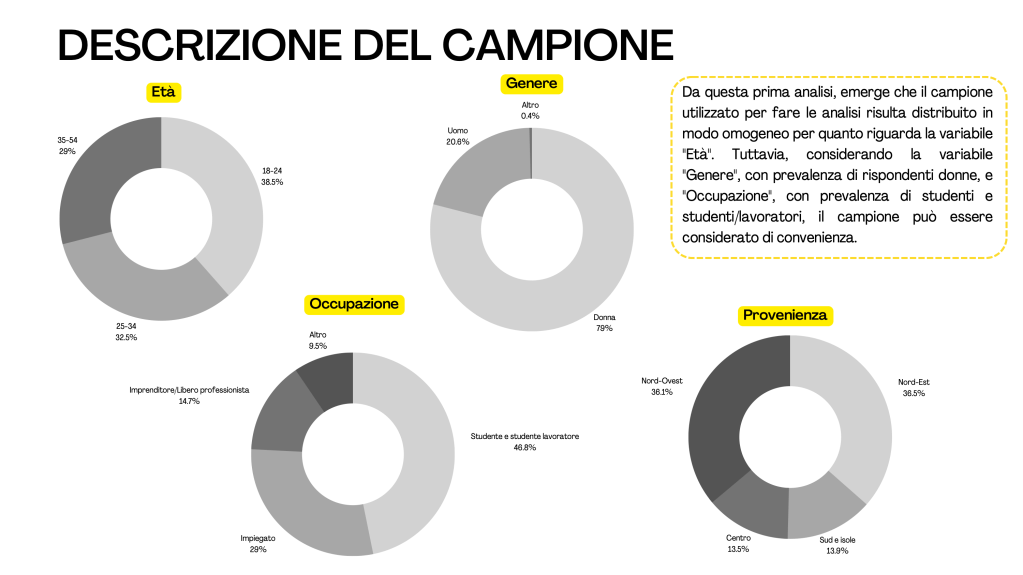 Il target considerato è composto da uomini e donne con un’età compresa tra i 18 e i 54 anni residenti in Italia. Di seguito si propone un estratto della ricerca.