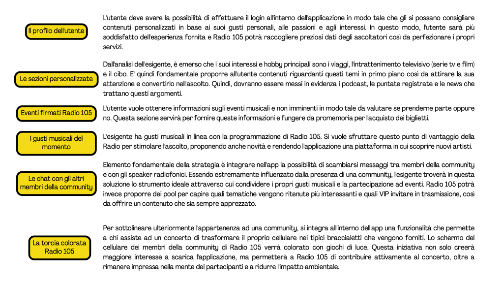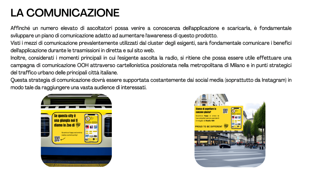 Il team, composto da Alessia Marinoni, Chiara Cavalli e Sofia Marchesan, studenti di Marketing Management dell’Università Bocconi, ha effettuato ricerche desk e on field qualitative e quantitative, con l’obiettivo di formulare proposte strategiche che mirano ad accrescere i punti di forza di Radio 105 e a migliorare e risolvere gli elementi di criticità dell’applicazione mobile dell’emittente radiofonica emersi nell’analisi, proponendo alcune strategie digital e di comunicazione mirate per intercettare il target dei più giovani.