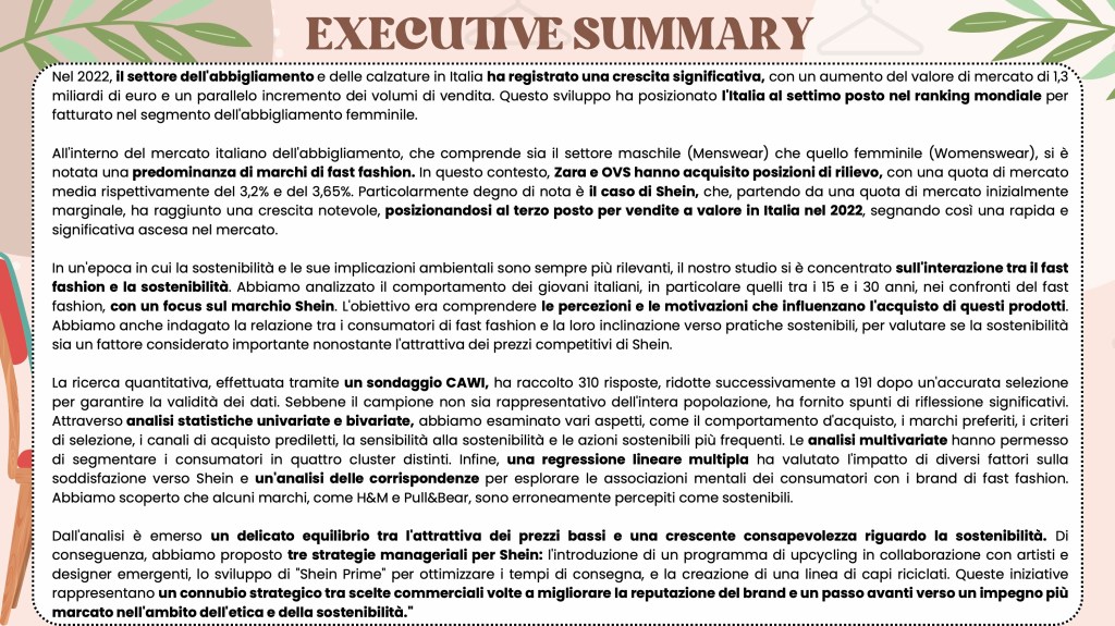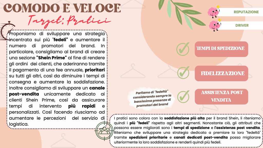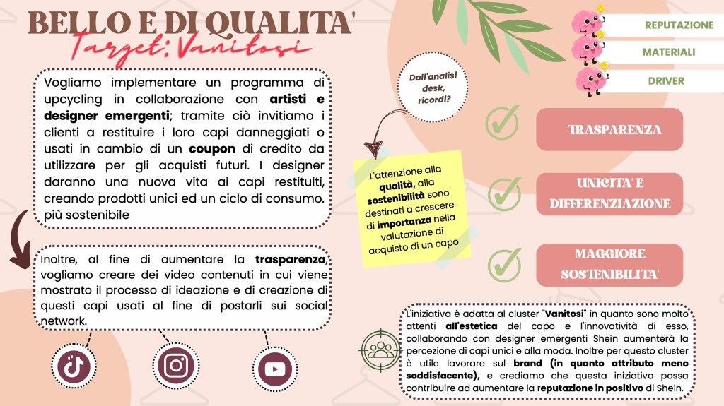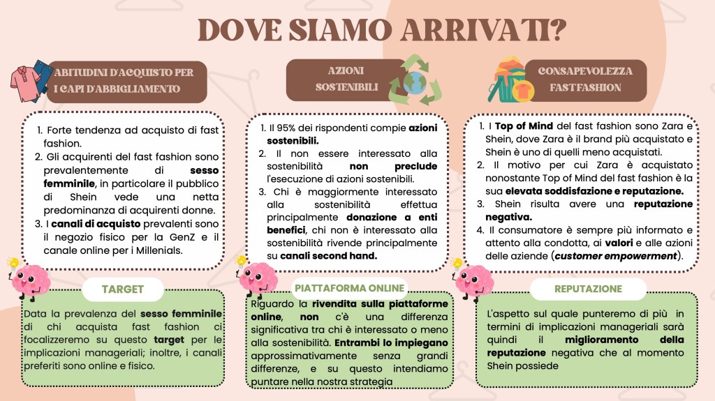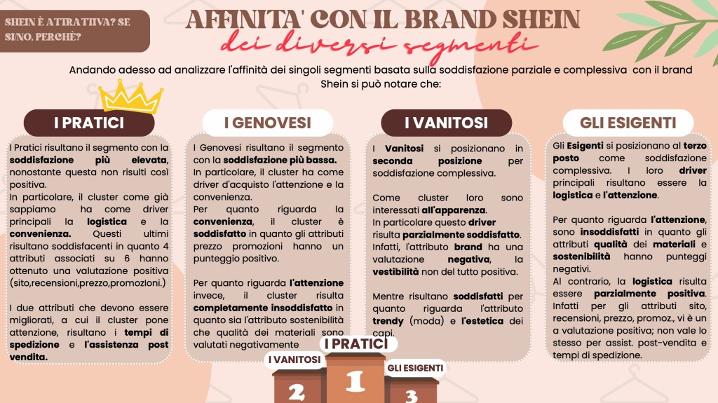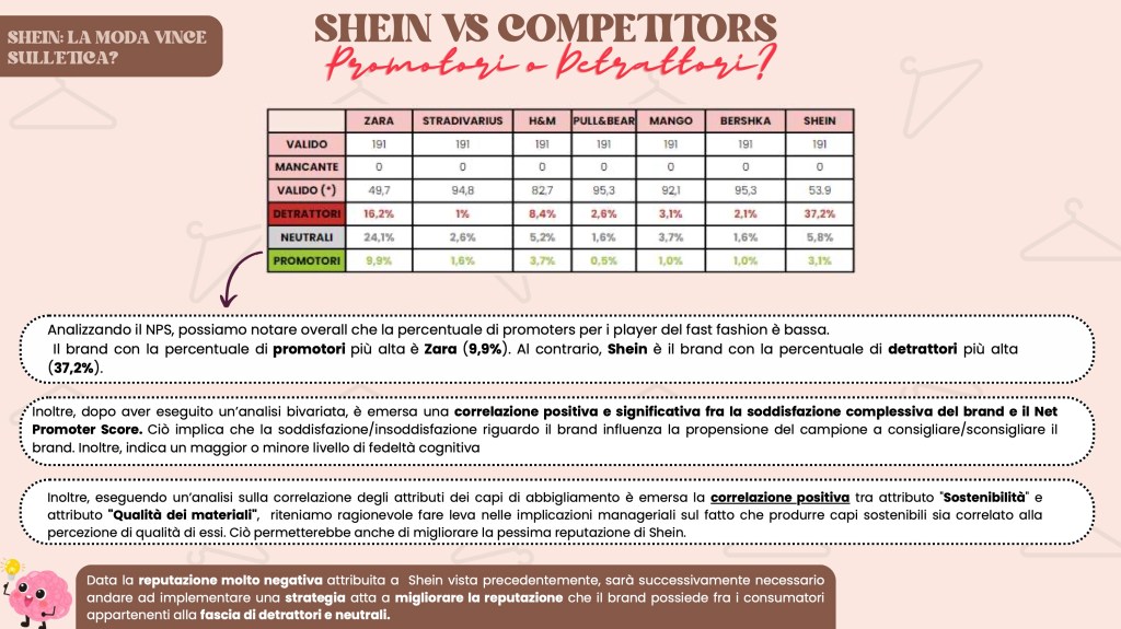 Analizzando il caso Shein, si evince chiaramente che la moda non sembra vincere né sulla sostenibilità né sull’etica. Infatti, nonostante uno dei driver di acquisto di Shein siano i capi alla moda e trendy, esso risulta il brand di fast fashion meno acquistato. Ad oggi, infatti, i consumatori sono sempre più attenti al “value for money” e soprattutto sono dotati di un’estrema discrezionalità e selettività (consumer empowerment). Ciò rende i consumatori più esigenti e consapevoli dei brand che acquistano in relazione al rispetto dell’ambiente e del capitale umano. Oggigiorno, avere una reputazione positiva, coerente e stabile è indispensabile per poter competere sul mercato e, purtroppo, la reputazione di Shein è pessima.